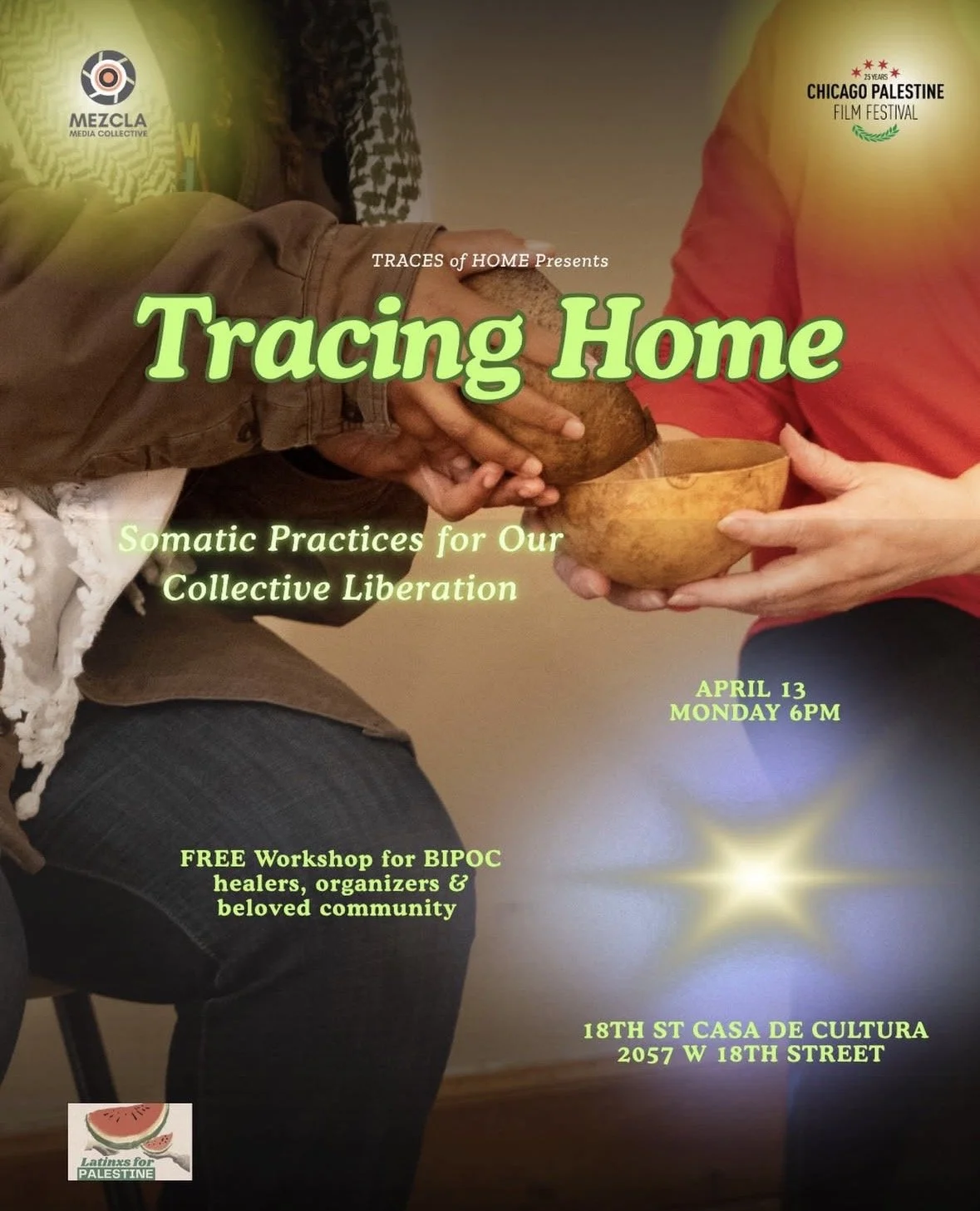 Tracing Homes: Somatic Practices for Our Collective Liberation Monday, April 13, 2026 6:00 PM 8:00 PM 18th Street Casa de Cultura 2057 W. 18th Street Chicago, IL, 60608 USA (map) Google Calendar ICS