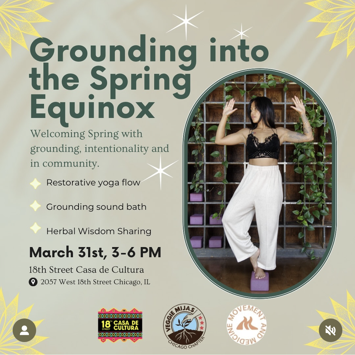 Grounding into the Spring Equinox Saturday, March 30, 2024 3:00 PM 6:00 PM 18th Street Casa de Cultura 2057 W. 18th Street Chicago, IL, 60608 USA (map) Google Calendar ICS