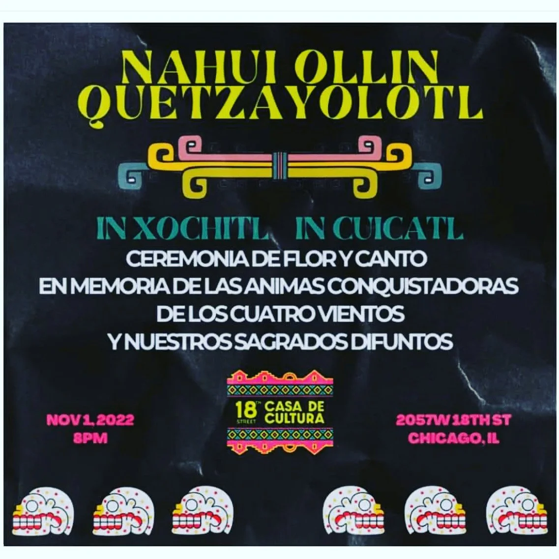 Nahui Ollin Quetzayolotl de la Mesa del Santo Niño de Atocha invita a todos los calpullis sin distinción cual ninguna, a toda la comunidad danzante y no danzante a nuestra velación de animas, ceremonia de Flor y Canto/In Xochitl In Cuicatl el 1ro de Noviembre a las 8pm