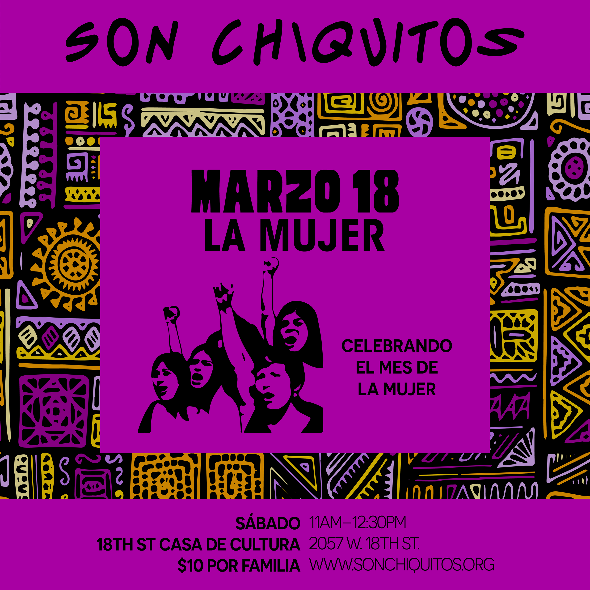 Son Chiquitos: La Mujer Saturday, March 18, 2023 11:00 AM 12:30 PM 18th Street Casa de Cultura 2057 W. 18th Street Chicago, IL, 60608 USA (map) Google Calendar ICS RSVP AQUÍ